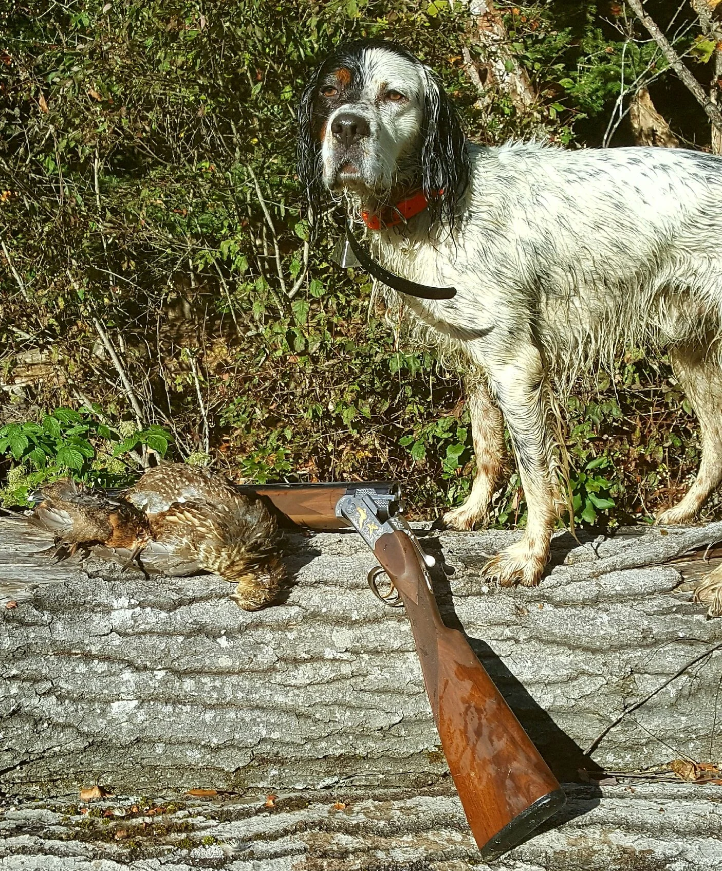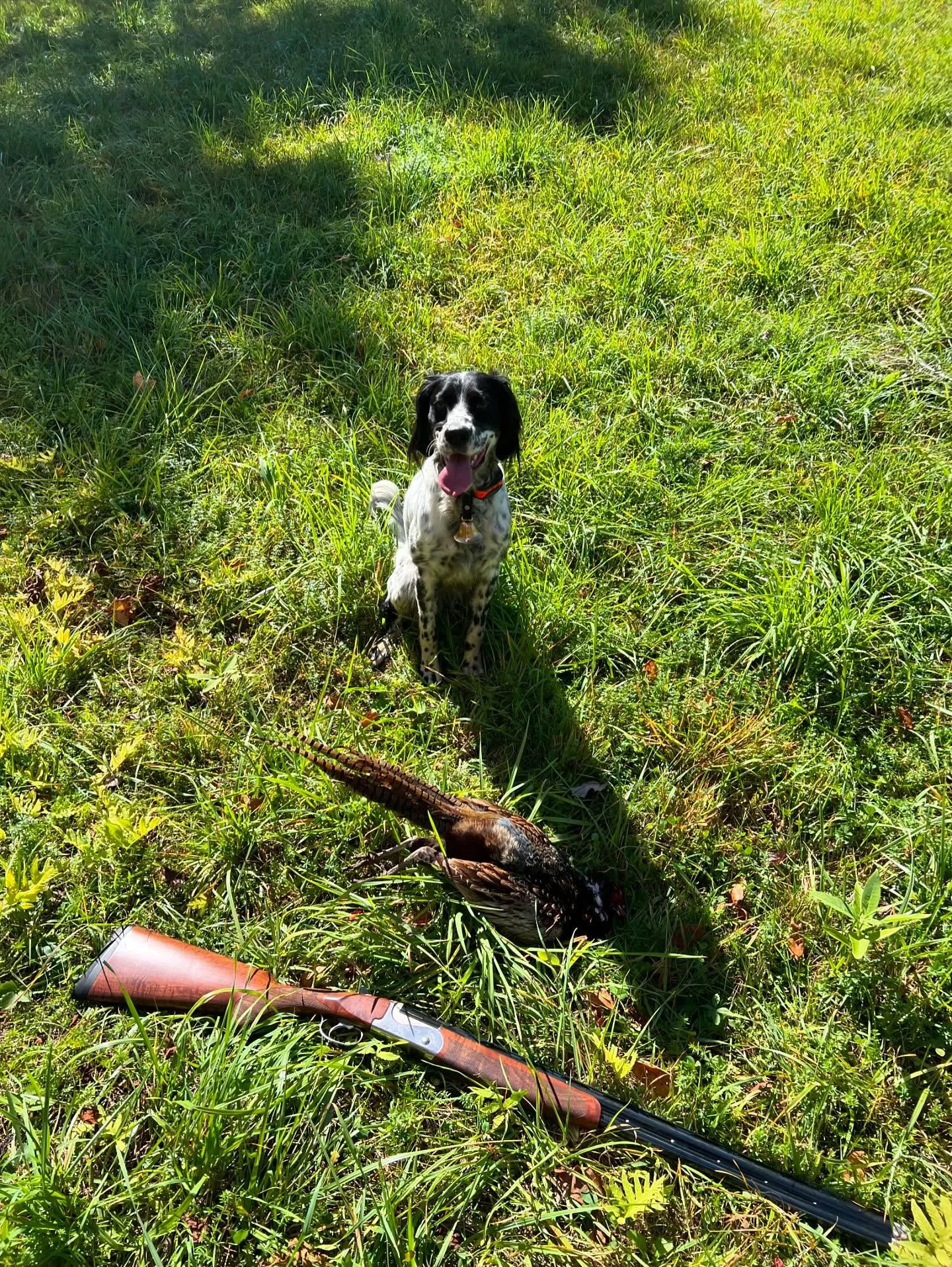 Wilma has turned out to be a great little bird dog, she’s still in that puppy phase but here she is with the first grouse of the season and her first ever!