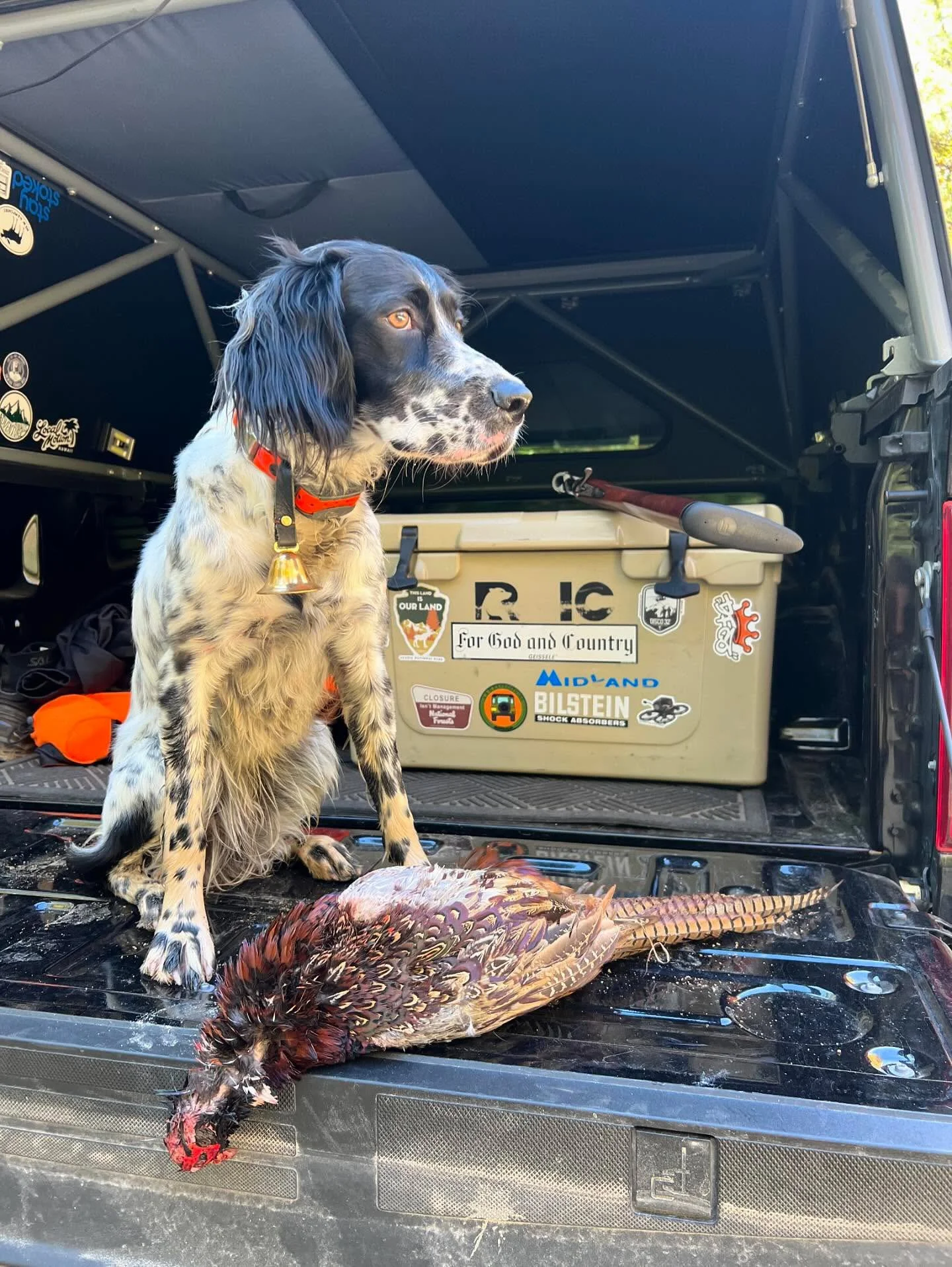 "We got Lady from George just over a year ago. She is my first bird dog and I trained her myself. She has been so easy to train and has been an amazing hunting partner. George even got her started on retrieving and she delivers birds to hand. My next dog will definitely be from Little River Kennels."